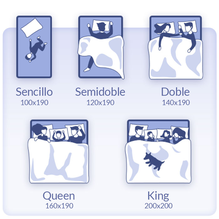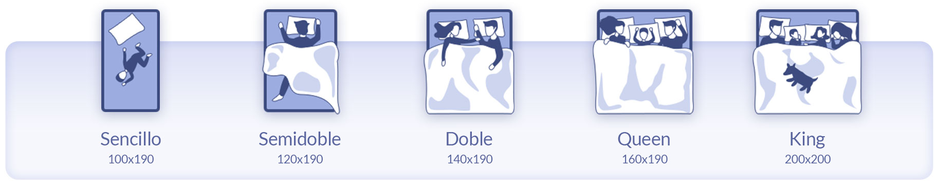 Los valores proporcionados están expresados en centímetros. Además, es crucial considerar las dimensiones de tu habitación y tener en cuenta la inclusión de mesitas de noche. En caso de utilizar mesitas de noche, se debe agregar un espacio adicional de 50 centímetros por cada una de ellas.