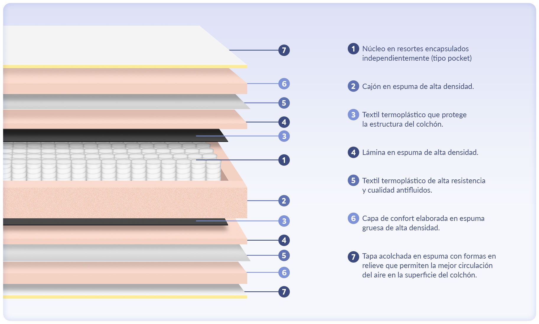 | ESTRUCTURA-COLCHÓN | Resortes pocket encajonados en espuma |