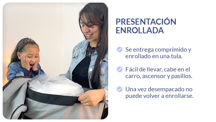 | PRESENTACIÓN-COLCHÓN | Comprimido al vacío, doblado y enrollado |