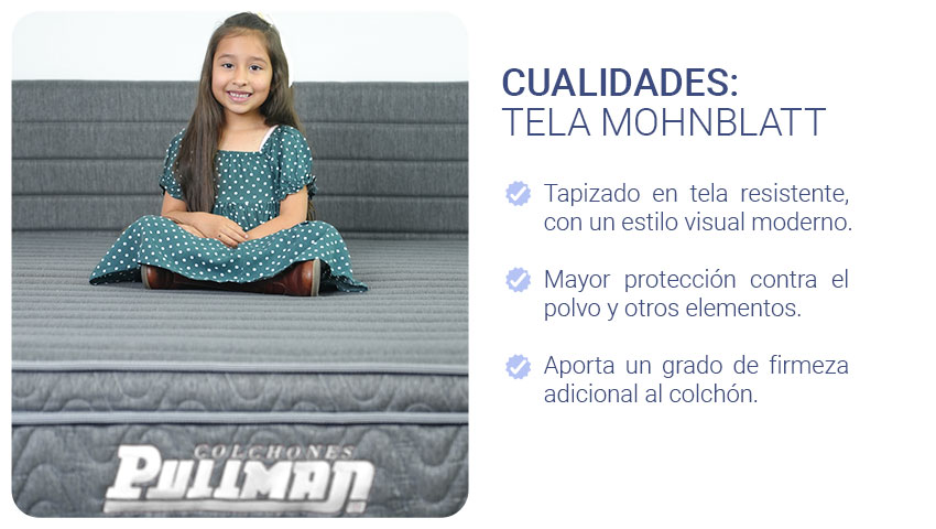 Lleva tu colchón a otro nivel seleccionando la opción Mohnblatt Design. Se trata de tapizar el colchón en un textil resistente como el utilizado en la tapicería de muebles, esto le aporta un toque de elegancia y protección adicional contra el polvo y otros elementos. *Esta opción tiene un costo adicional.