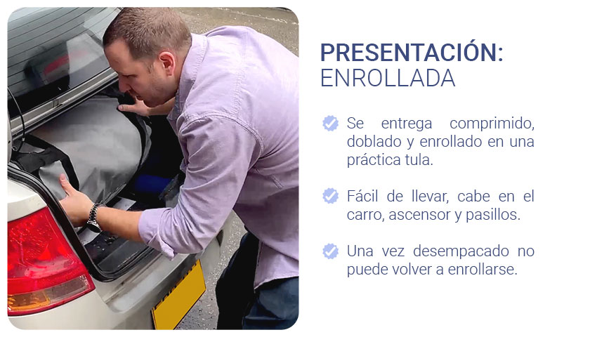Utilizamos equipos de última tecnología que nos permiten comprimir el colchón y enrollarlo para entregarlo en una caja que facilita su traslado. Este método no compromete la calidad del producto, es fácil de desempacar. Una vez abierto no puede volver a enrollarse.