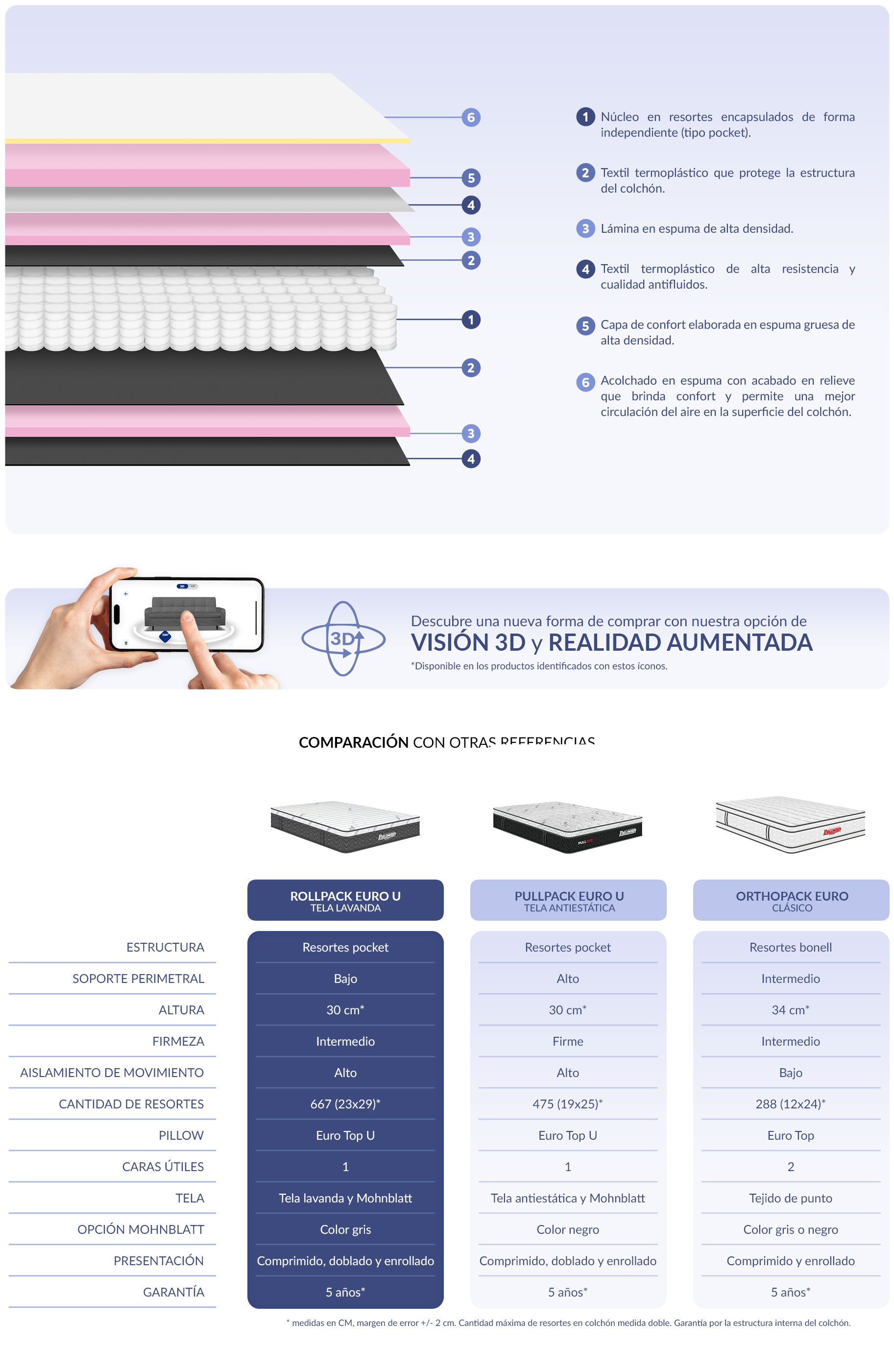 Resortes encapsulados independientemente. Sensación de ingravidez. Aísla el movimiento